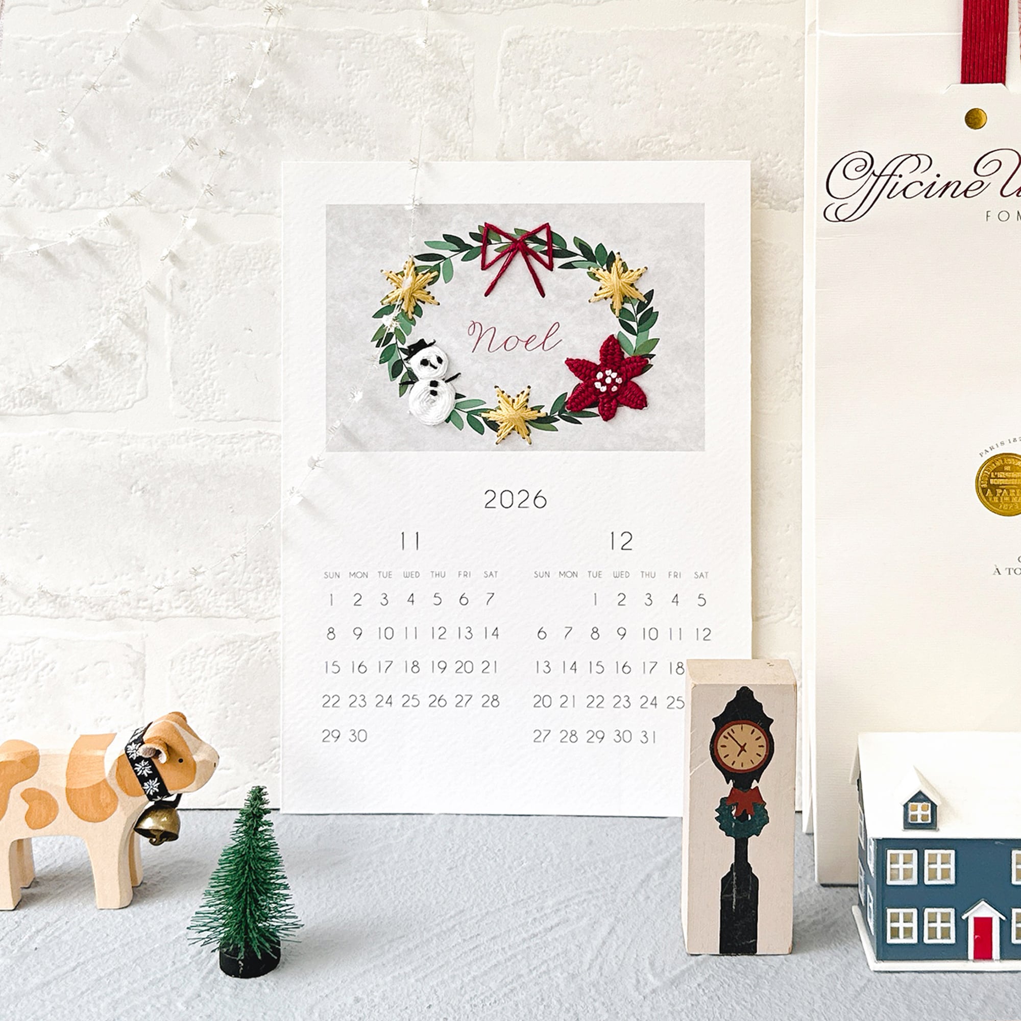 2026年のカレンダーを紙刺繍でつくるキットです。