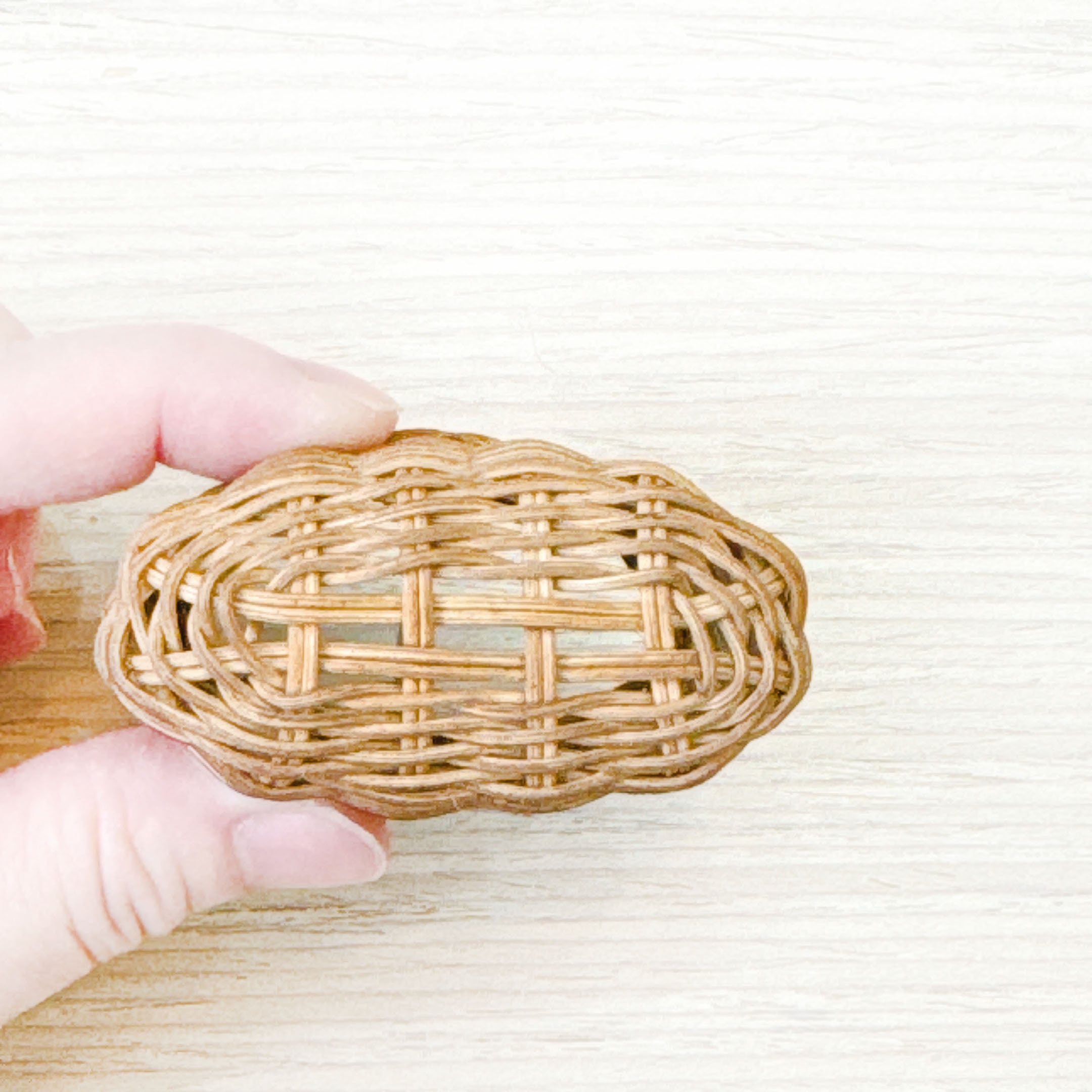 10月の1ヶ月間(〜11/1まで)刺繍道具展「Atelier アンナとラパン」での展示販売を行っている、藤でかごやアクセサリー、敷物などを編む作家さん、ruruhana(ルルハナ)さんの作品です。