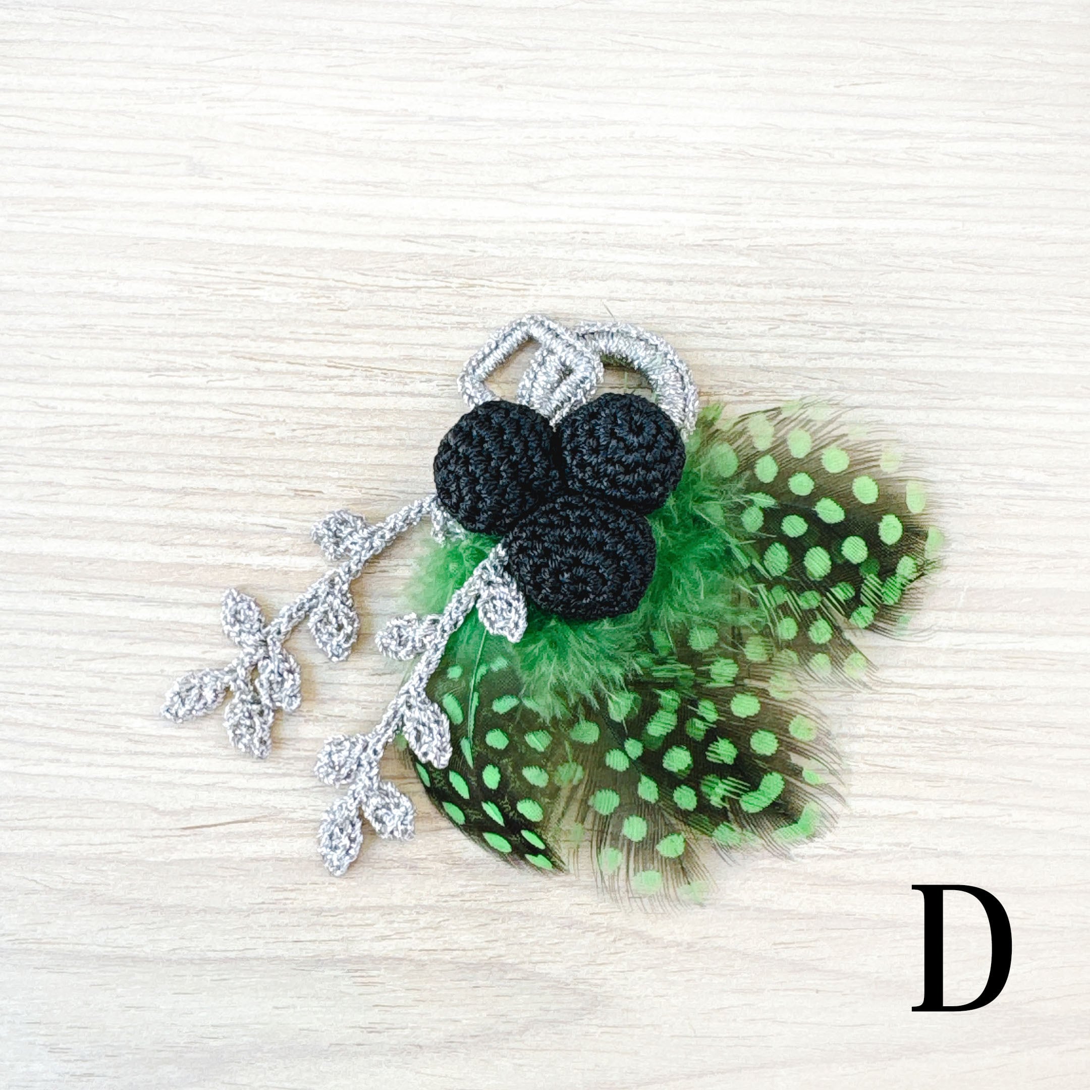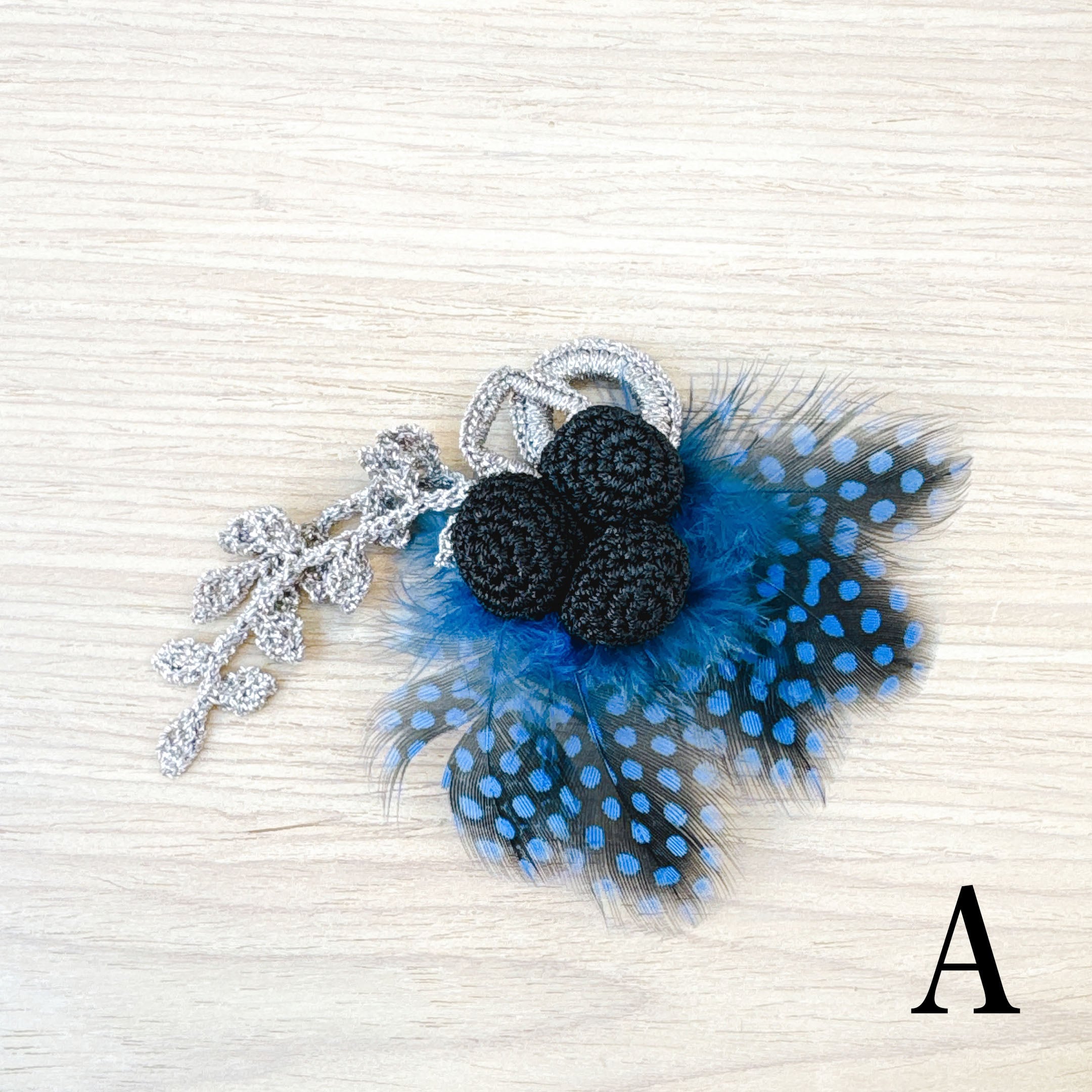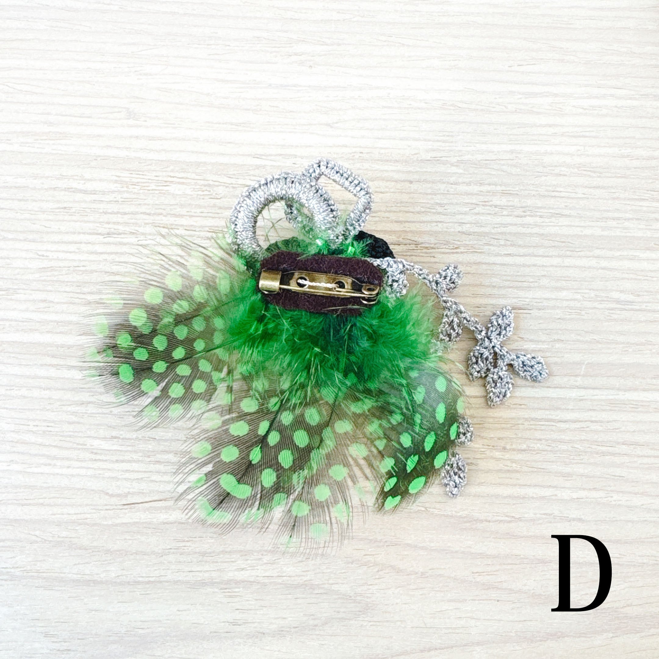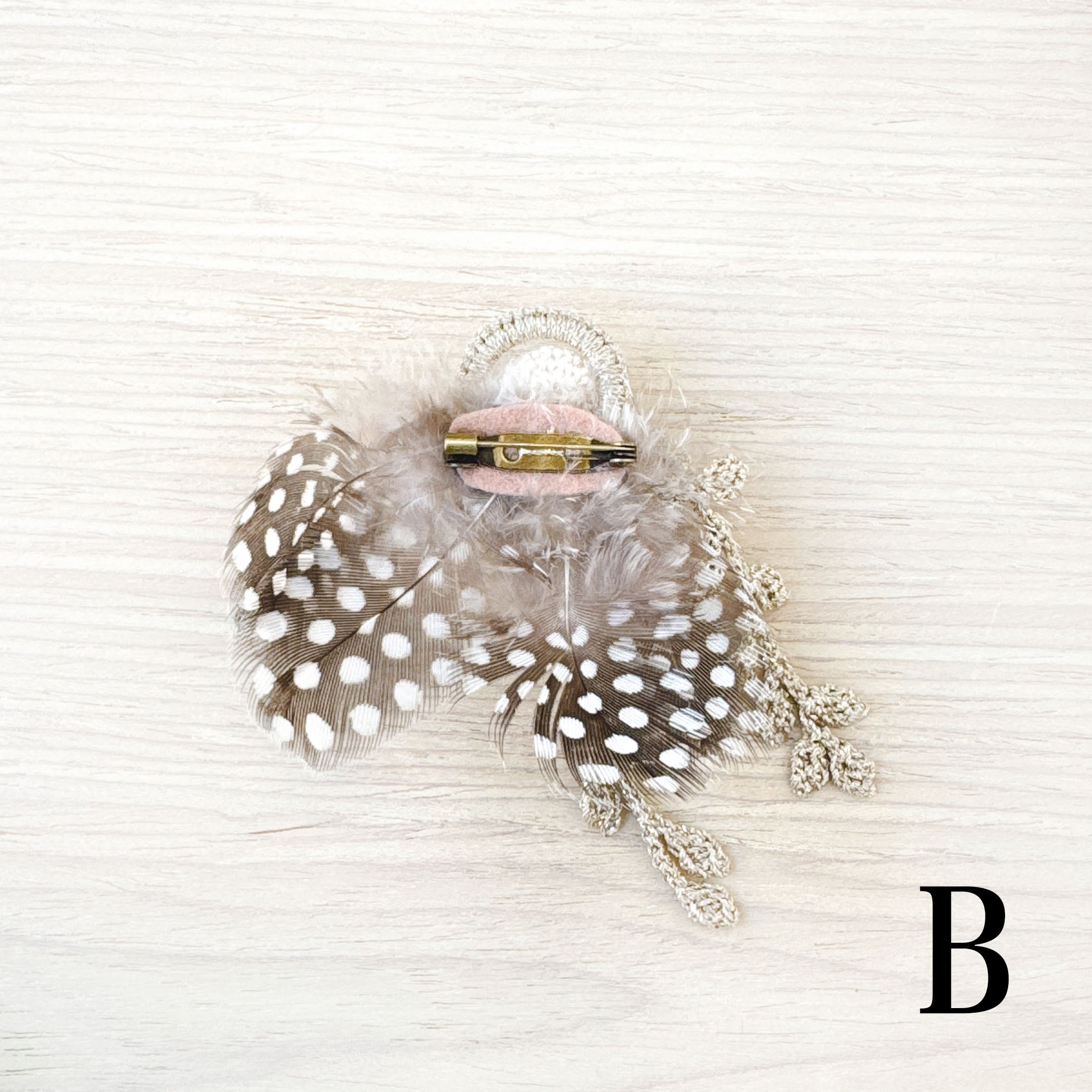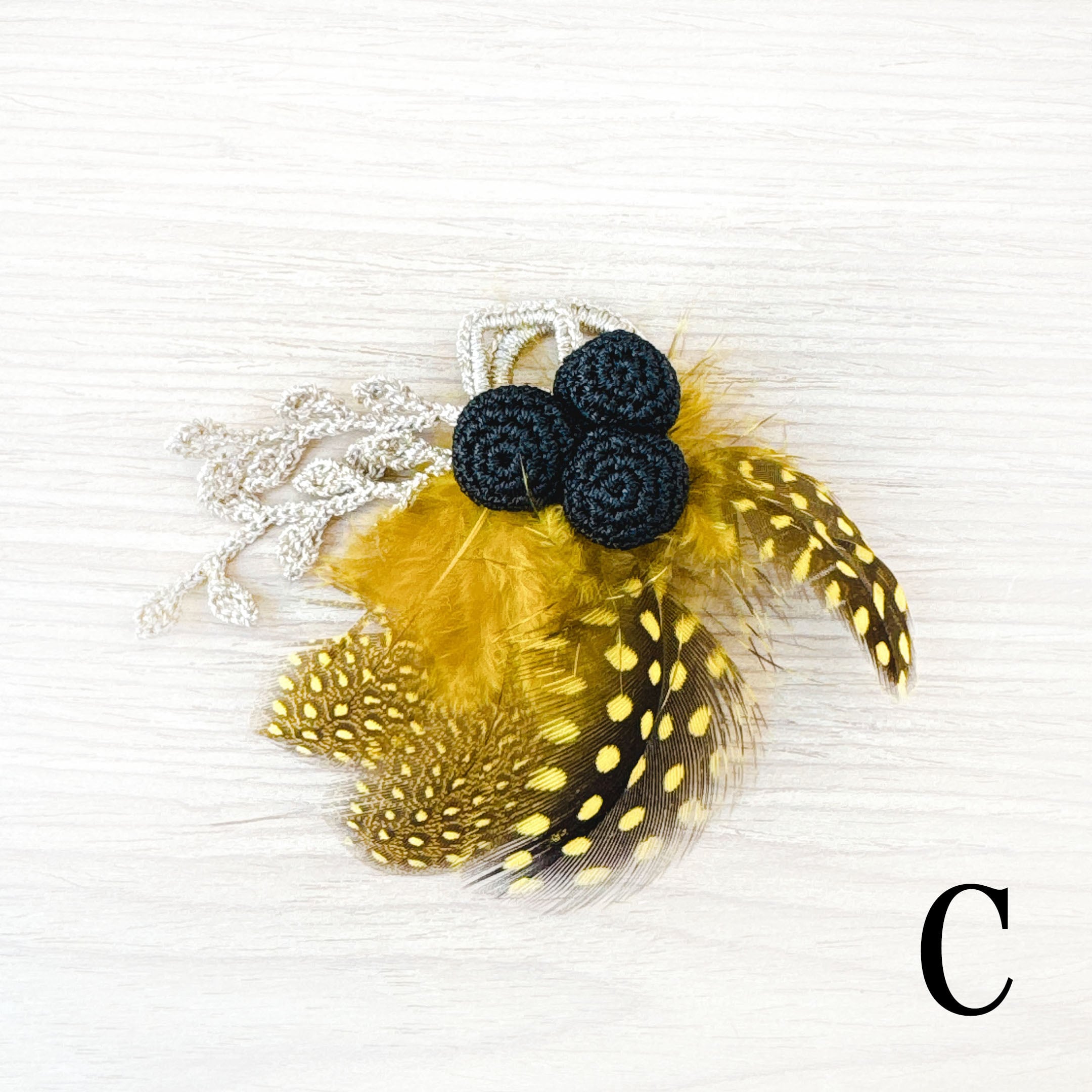 胸元や帽子、かばんなどつけると羽が主役になってとってもかわいいです。