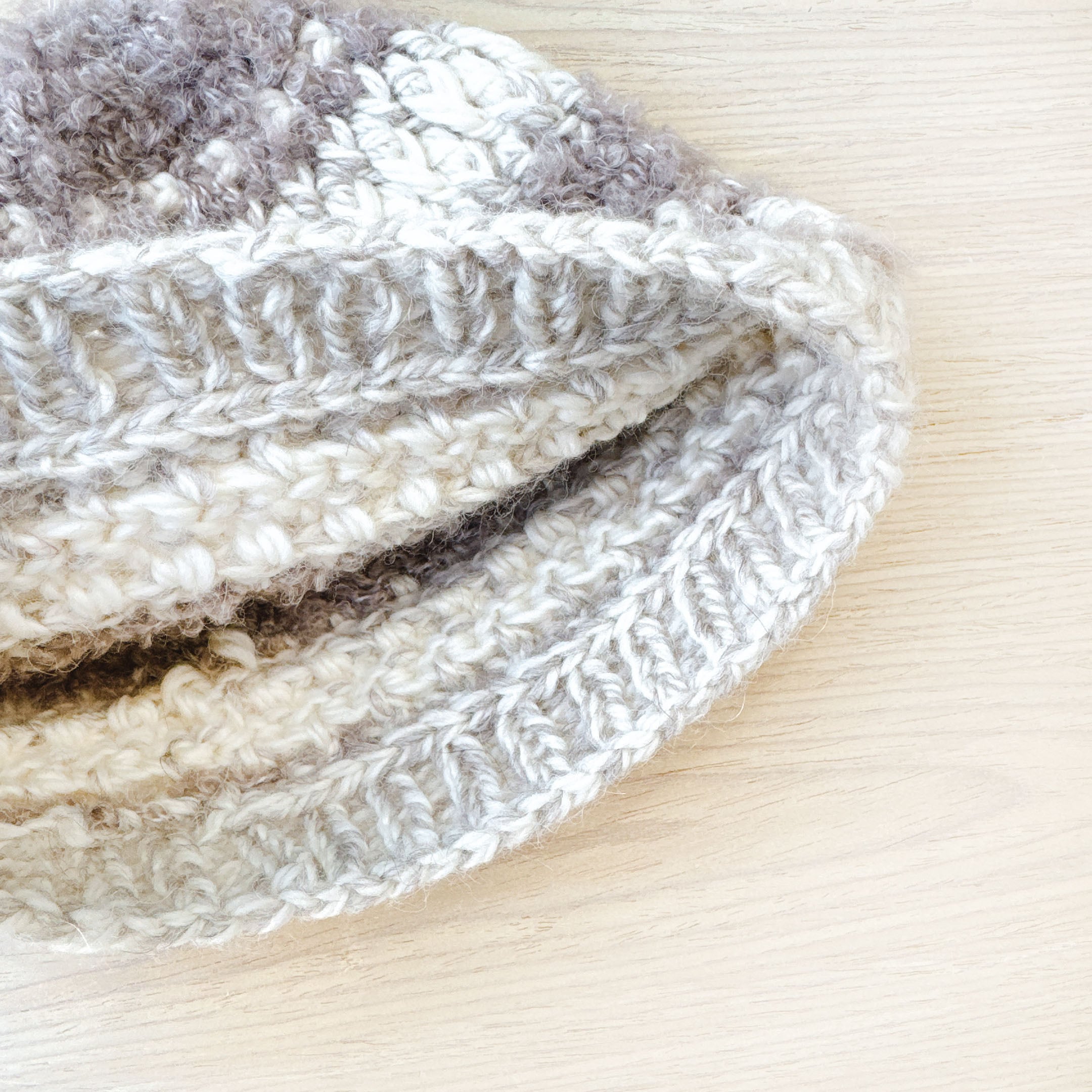 機械で編んだものが主流の世の中で、手編みの帽子を