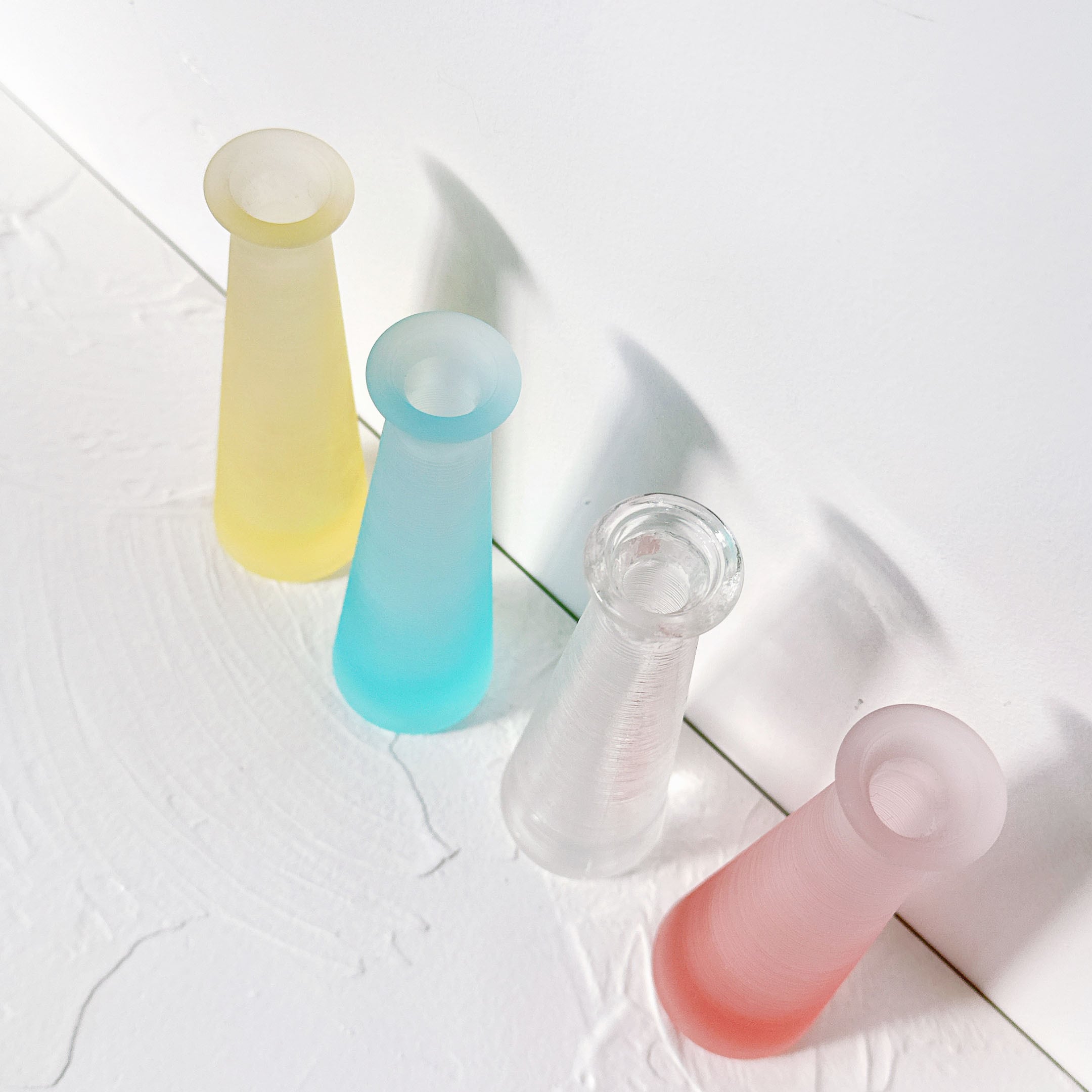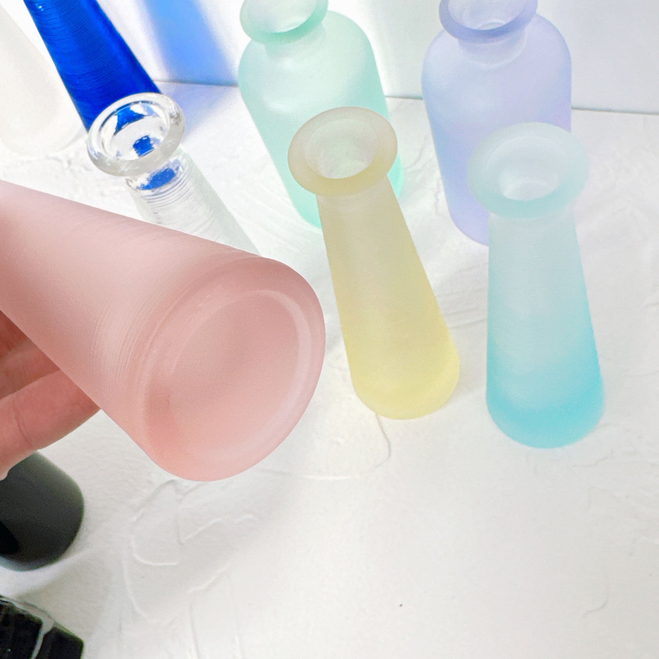 今回は1970年代に作られたカラーガラスの小瓶が並びます。