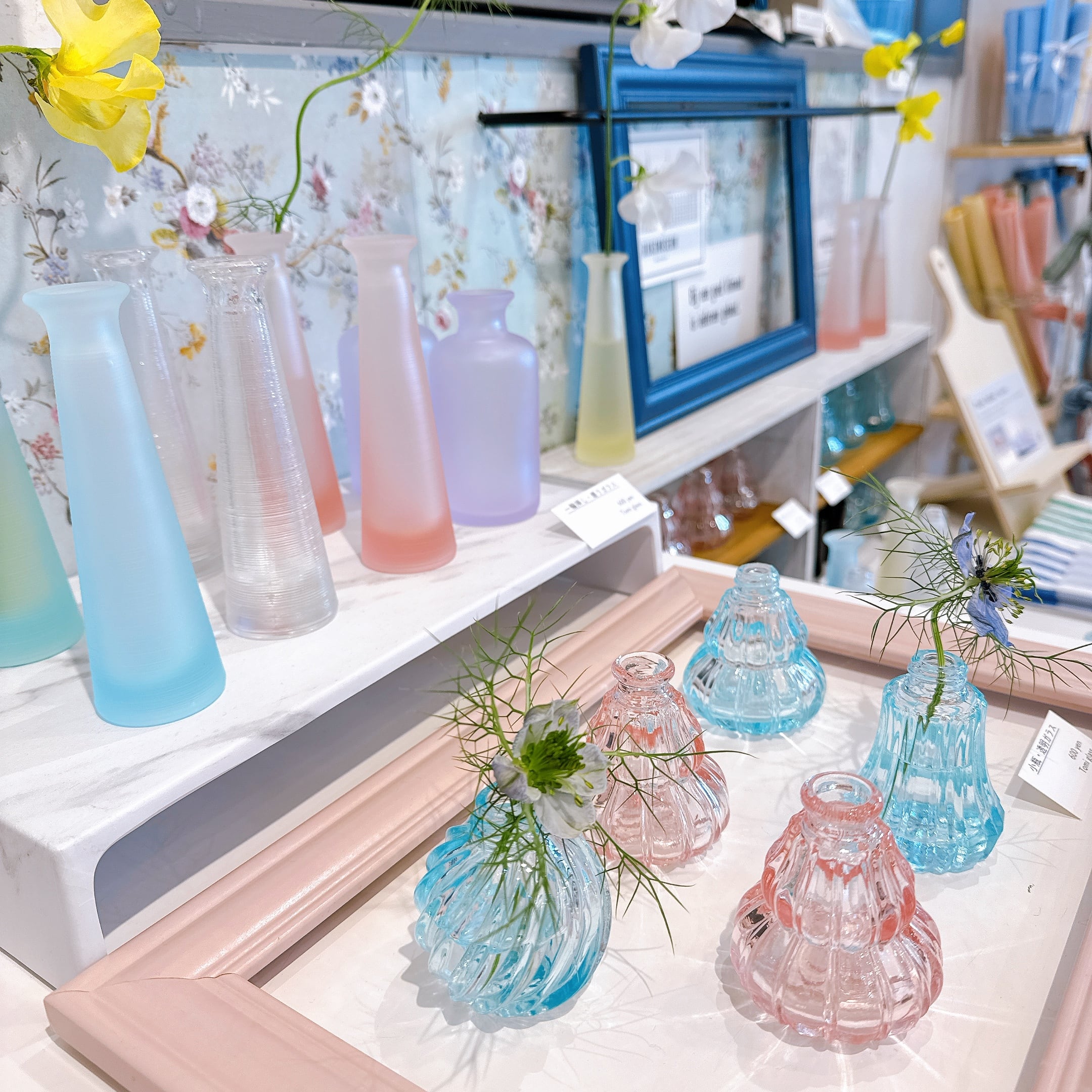 気に入ったお花を一輪買って、飾るだけなので、簡単に可愛くなります。