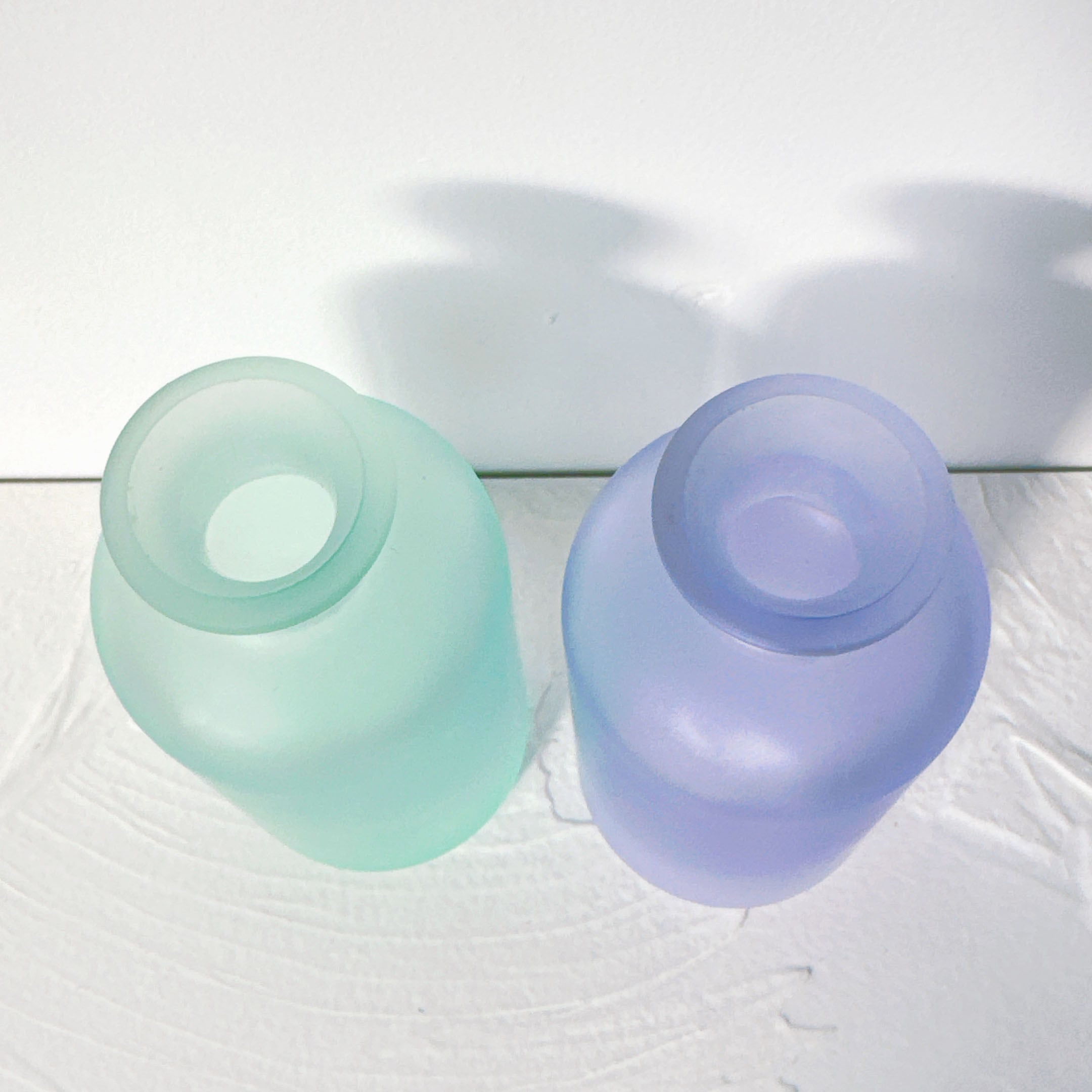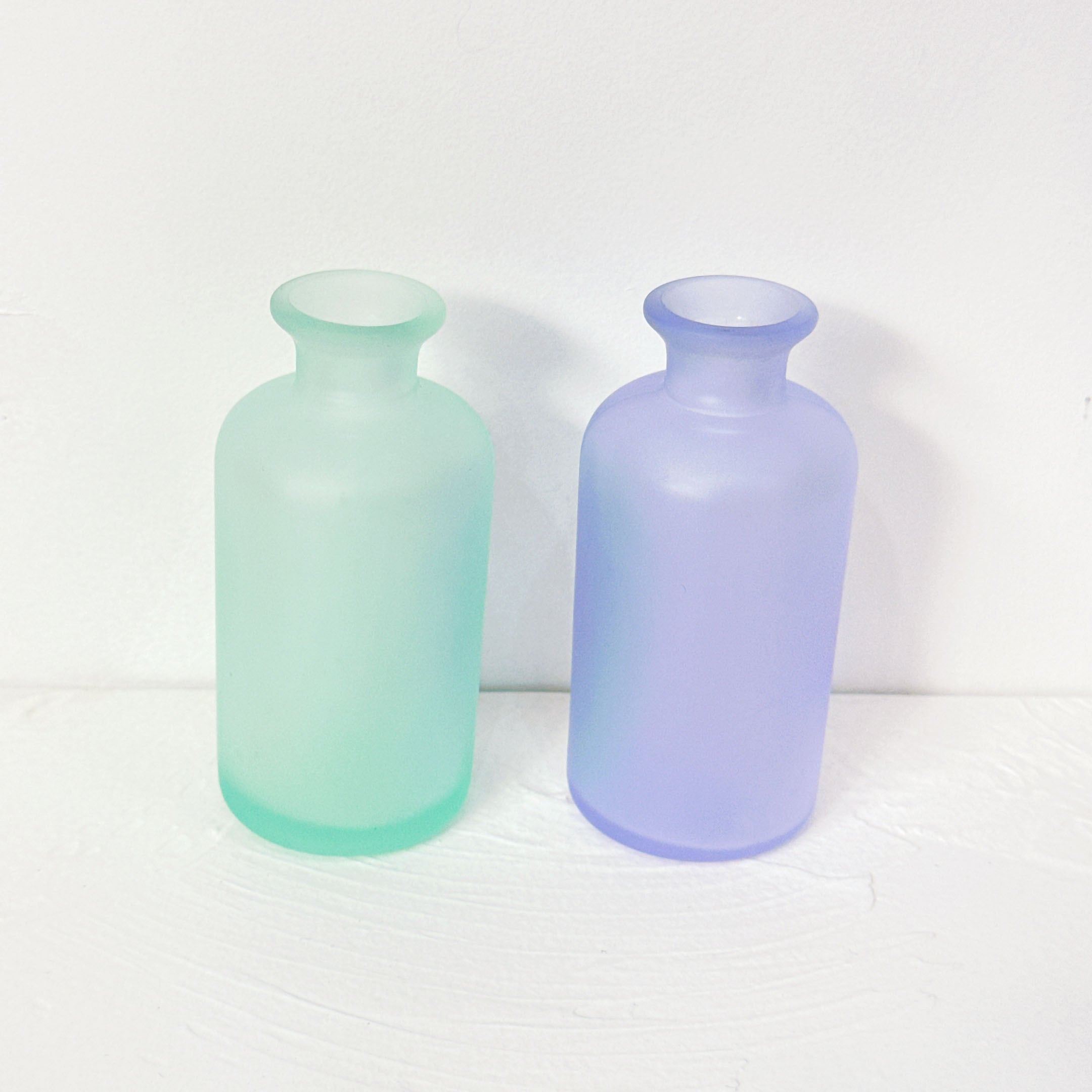 今回は1970年代に作られたカラーガラスの小瓶が並びます。