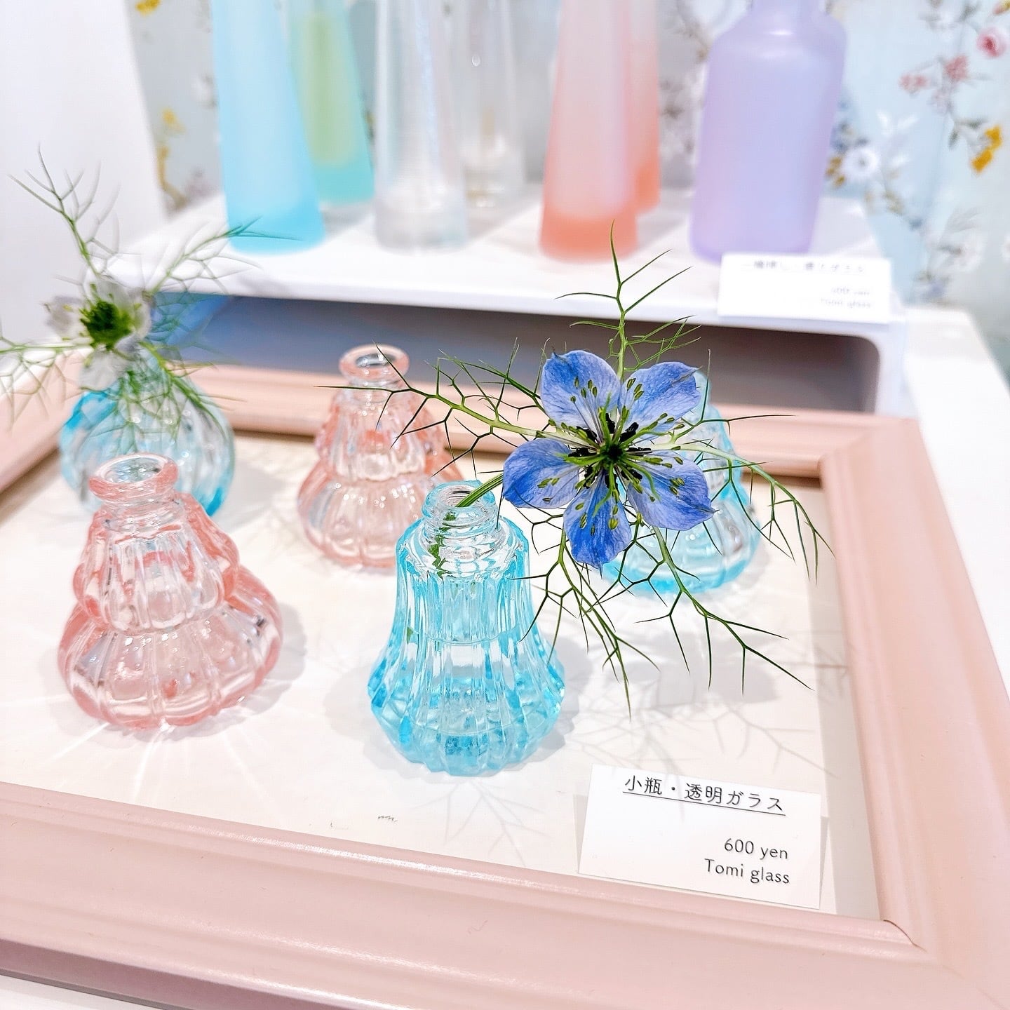 刺繍道具展「Atelier アンナとラパン」での展示販売を行っている、トミガラスさんのヴィンテージ花瓶です。