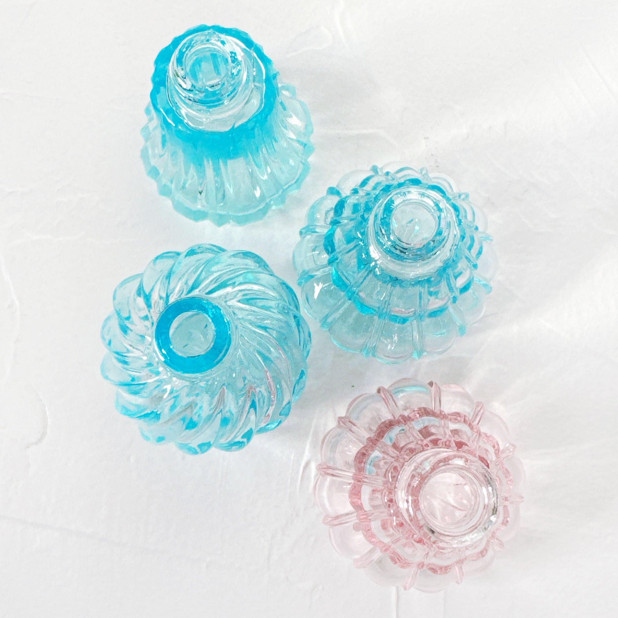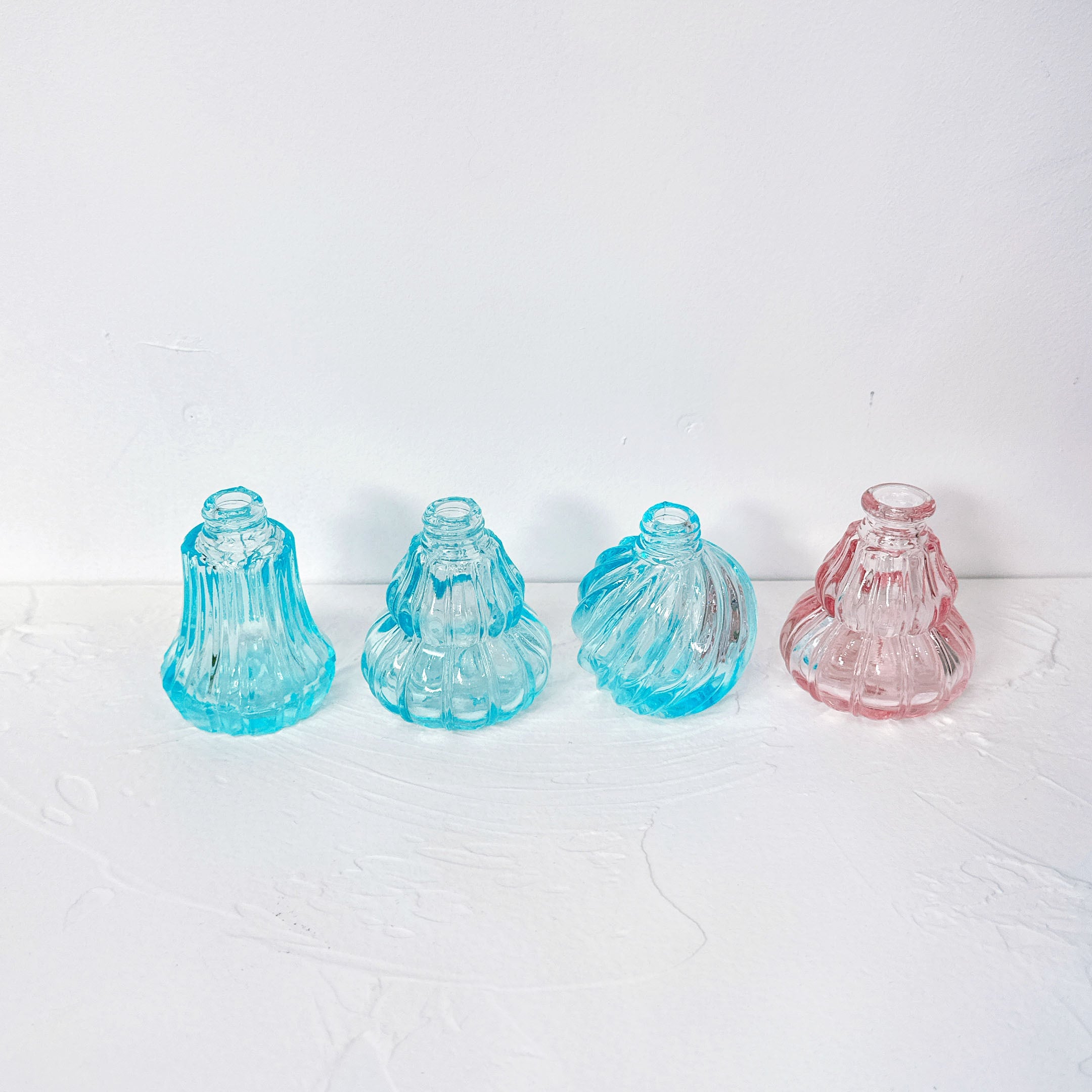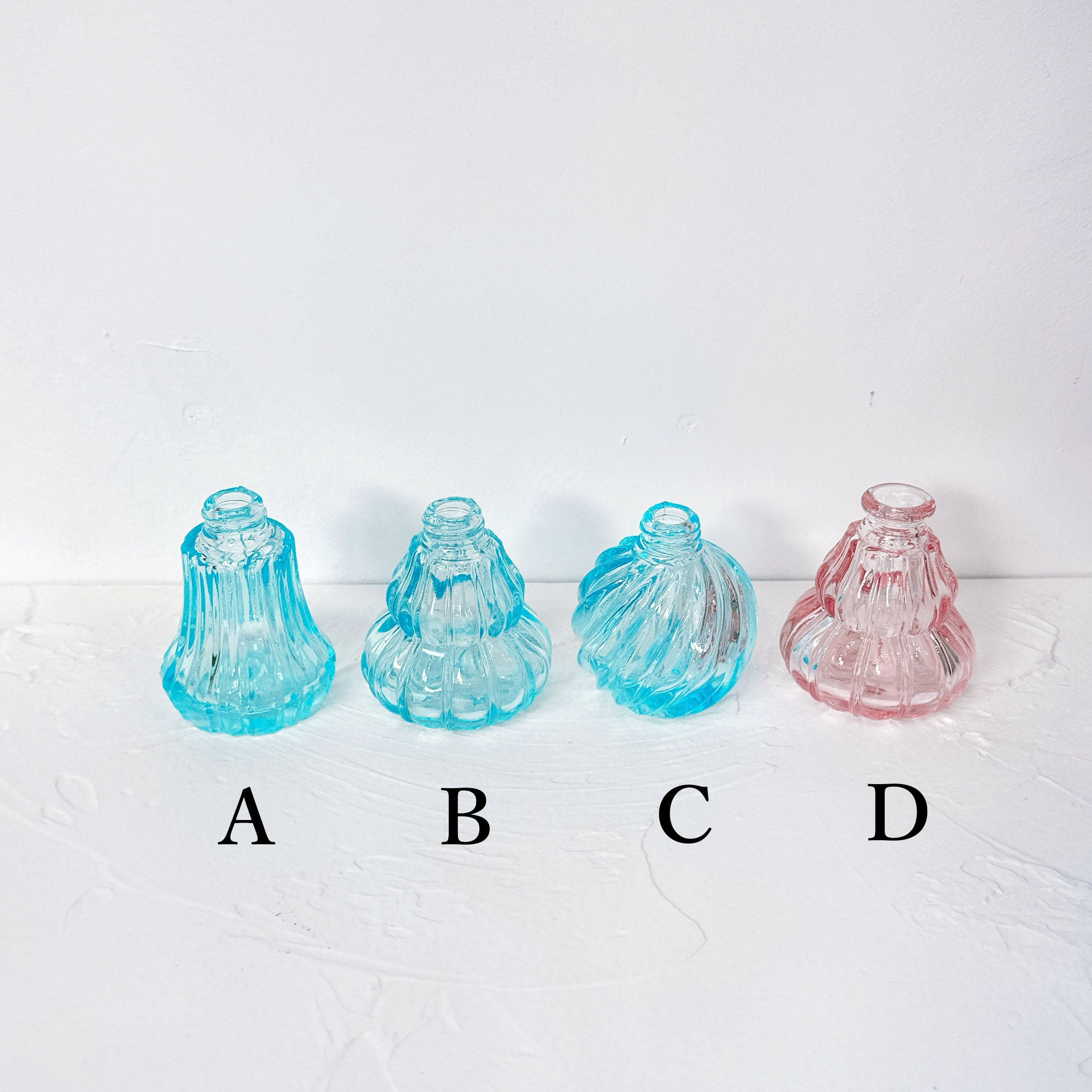 今回は1970年代に作られたカラーガラスの小瓶が並びます。