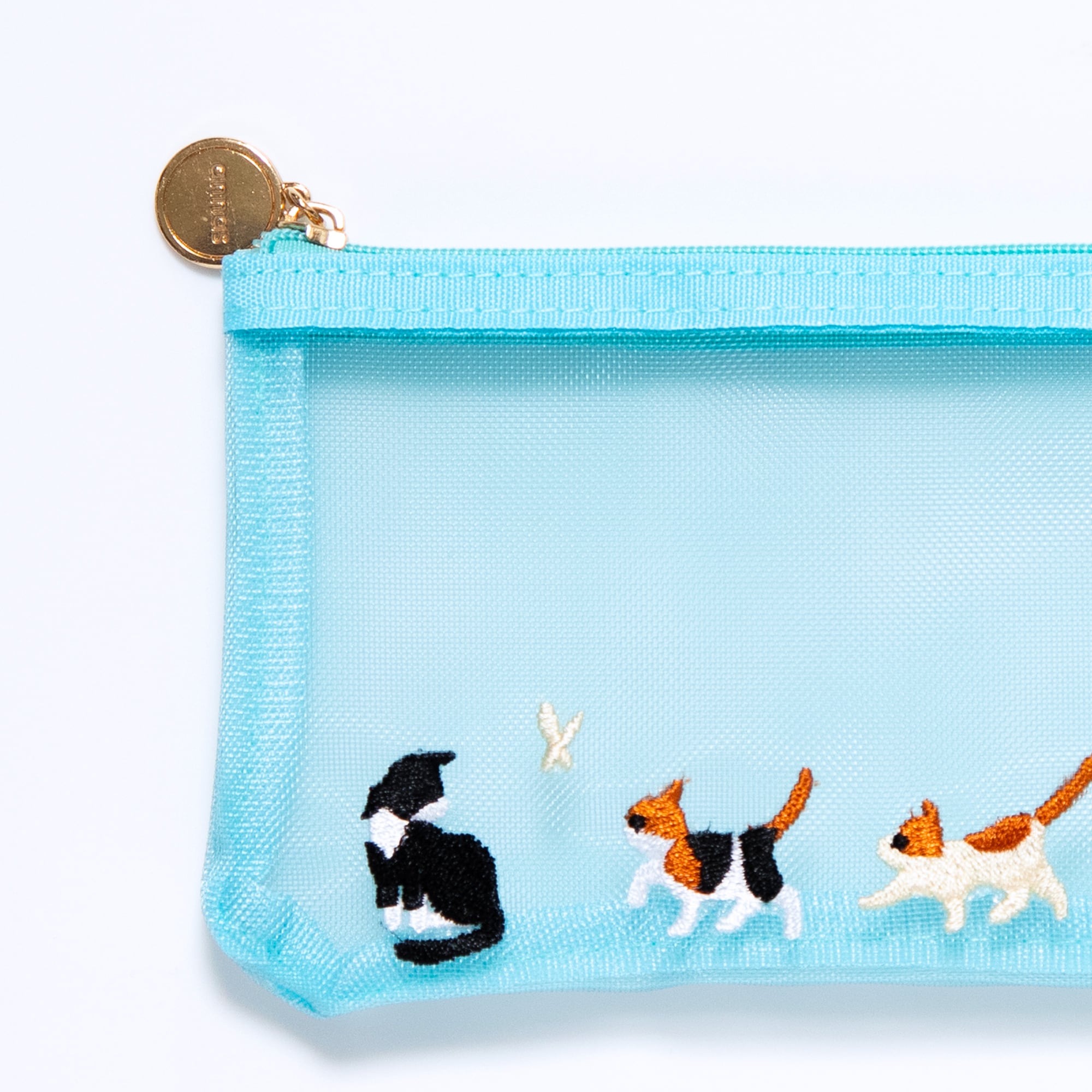 【annas刺繍文具】刺繍メッシュペンポーチ|ネコ
