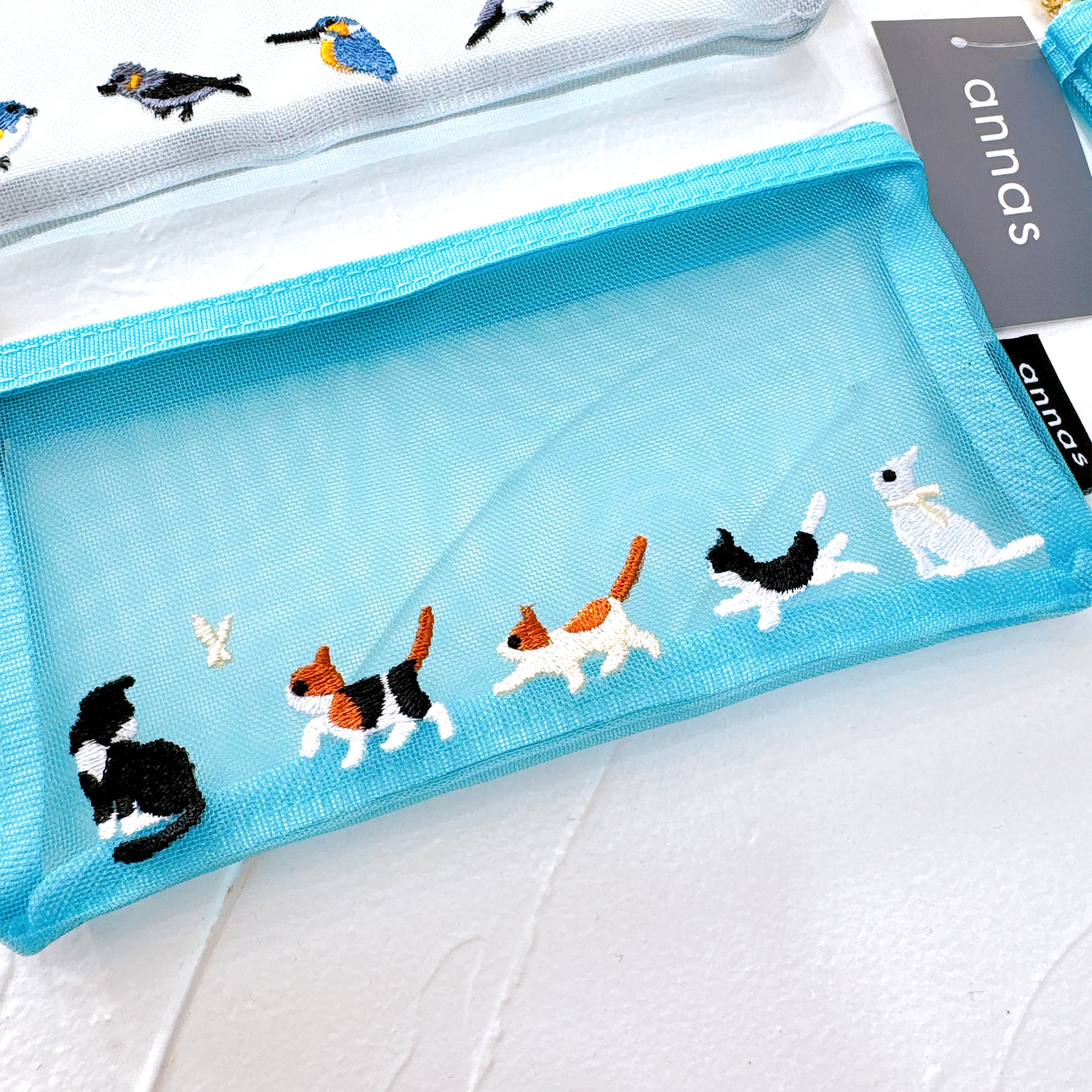 • 【annas刺繍文具】刺繍メッシュポーチ|ツバメ