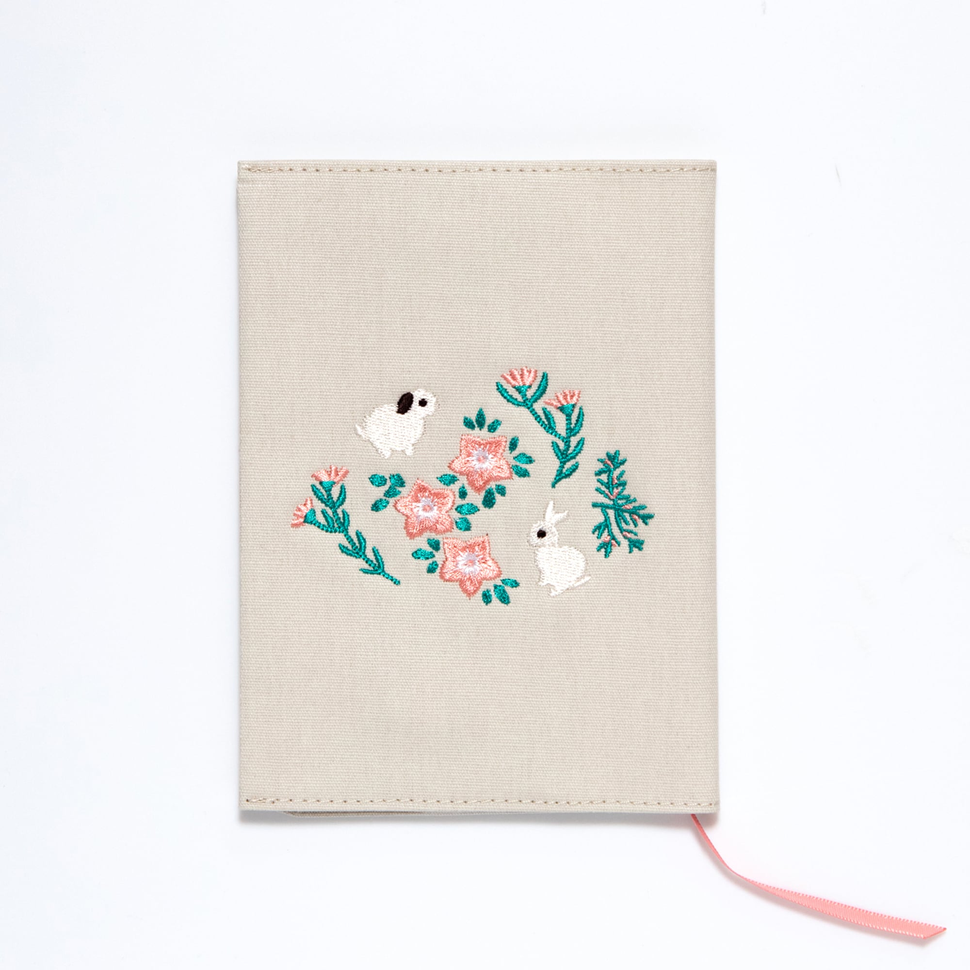 【annas刺繍文具】刺繍ブックカバー|ウサギ