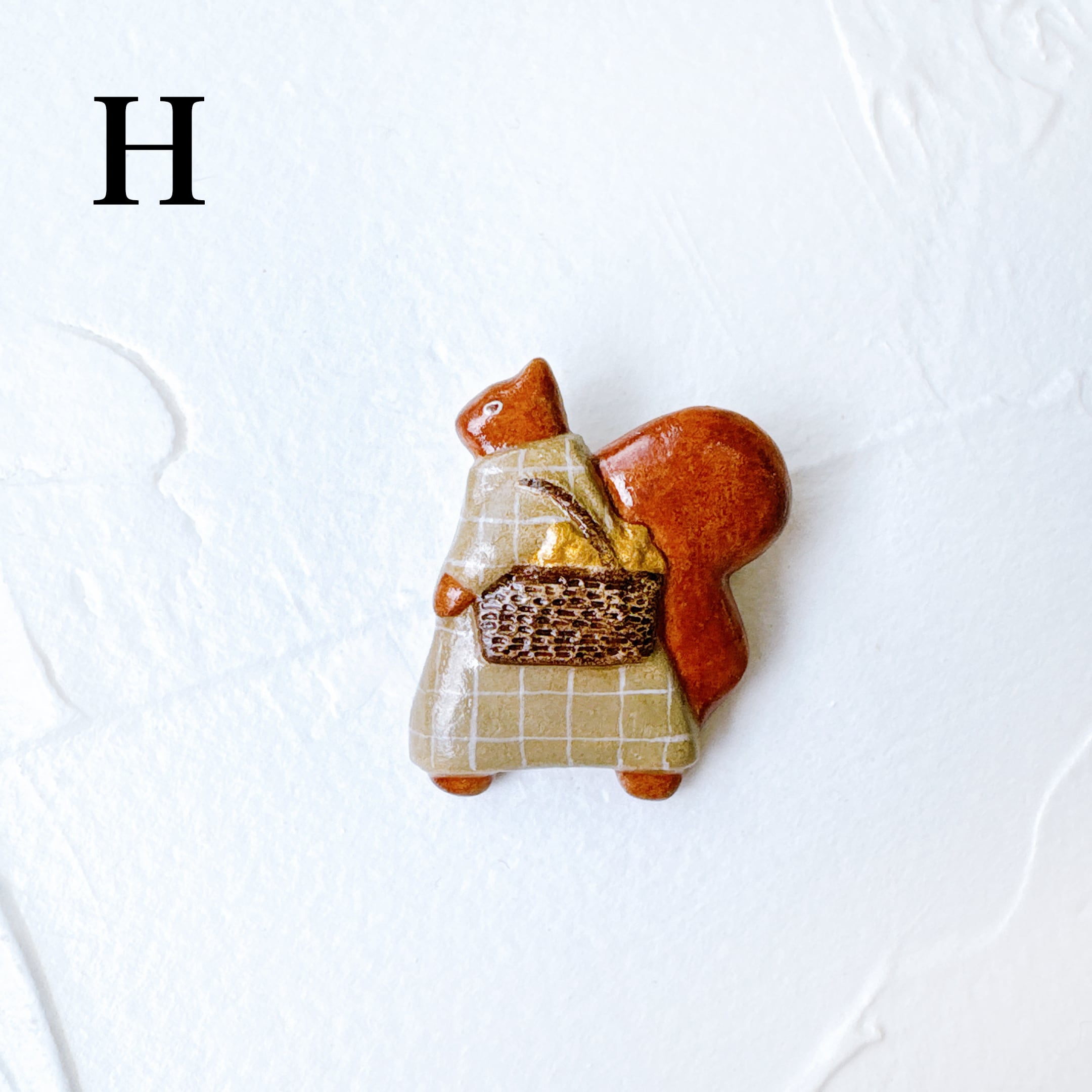 H リスのお買い物ブローチ 縦4cm 横3.3cm
