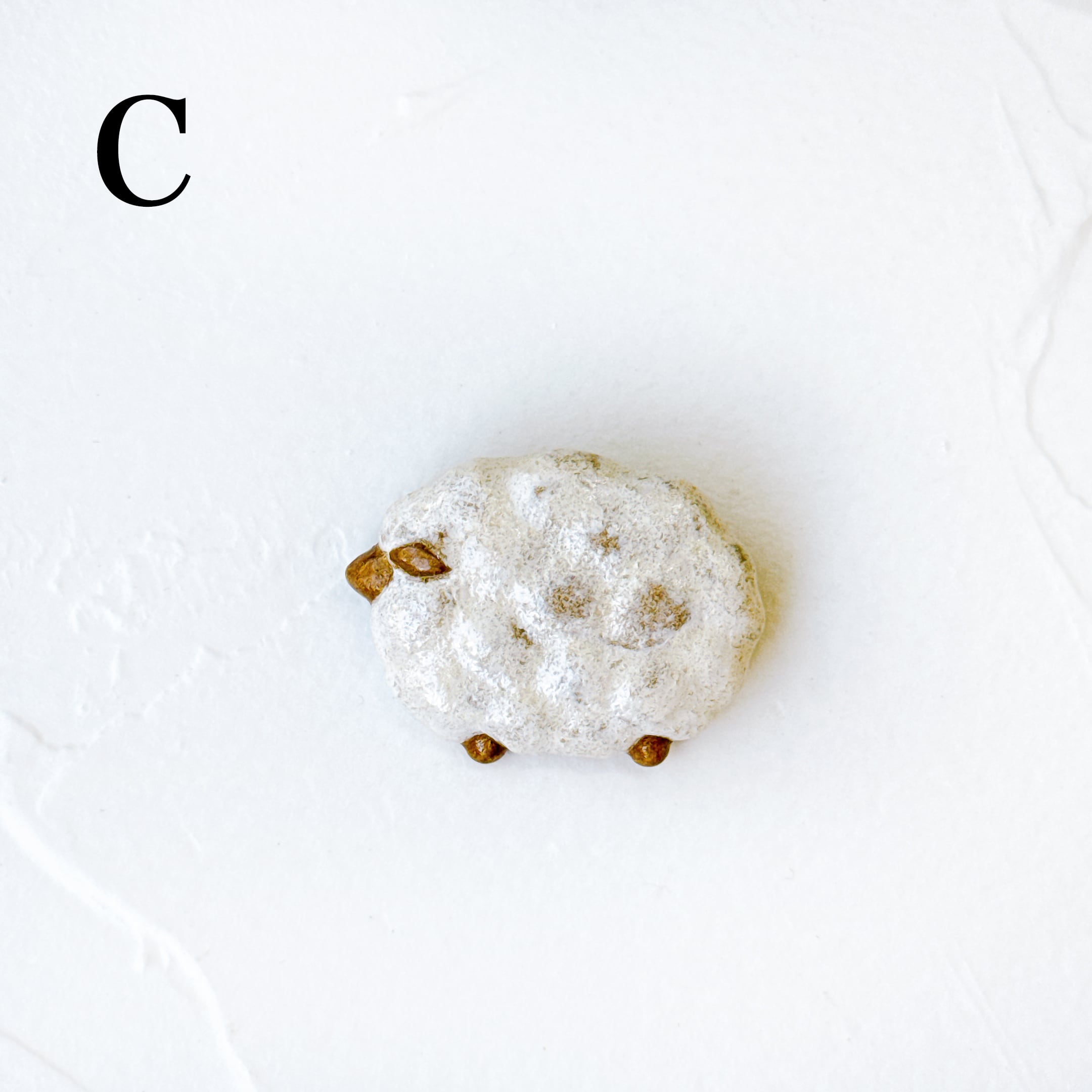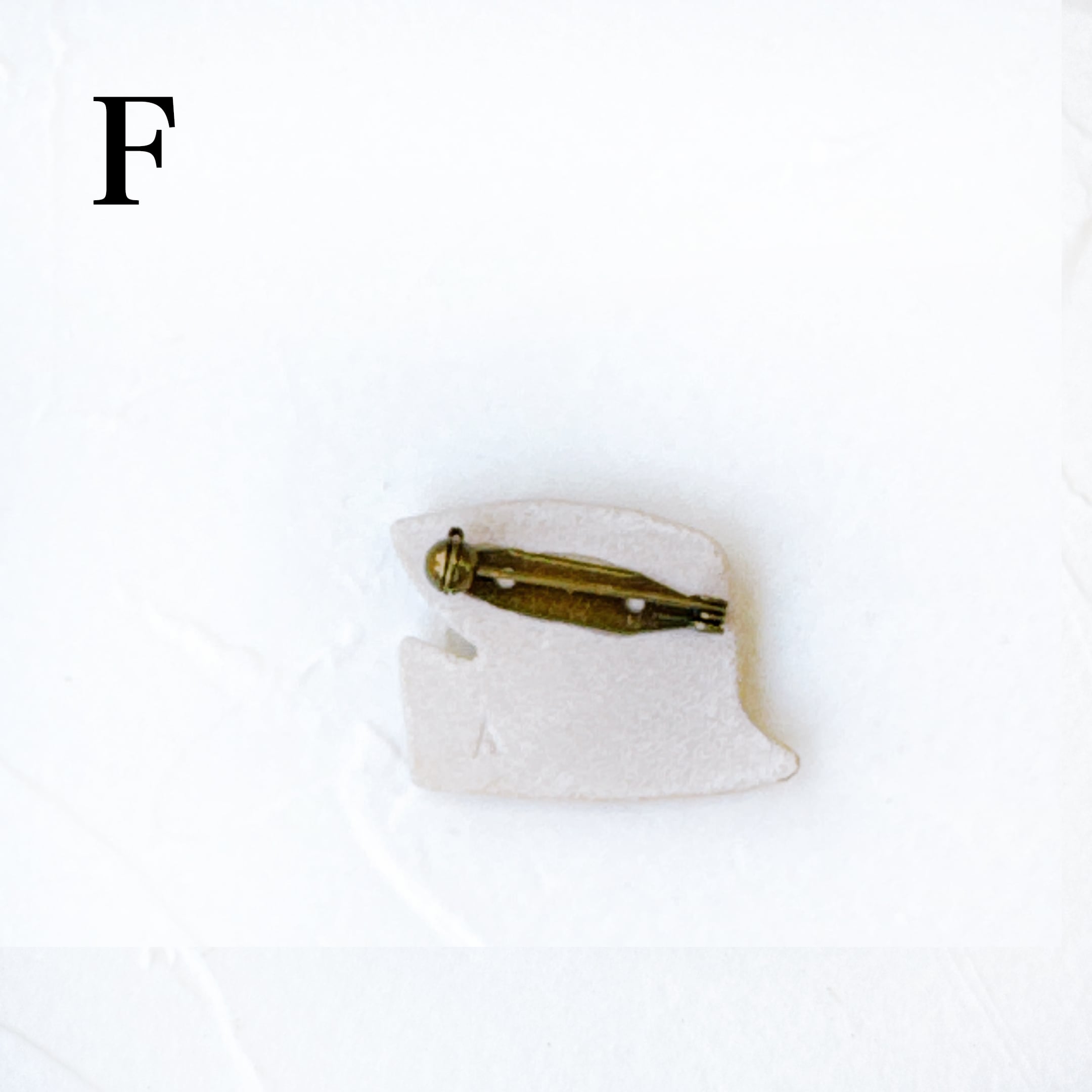 4月の1ヶ月間(通販は〜4/26まで)刺繍道具展「Atelier アンナとラパン」での展示販売を行っている、陶土を使ってブローチを作っているアルペジオさんの作品です。