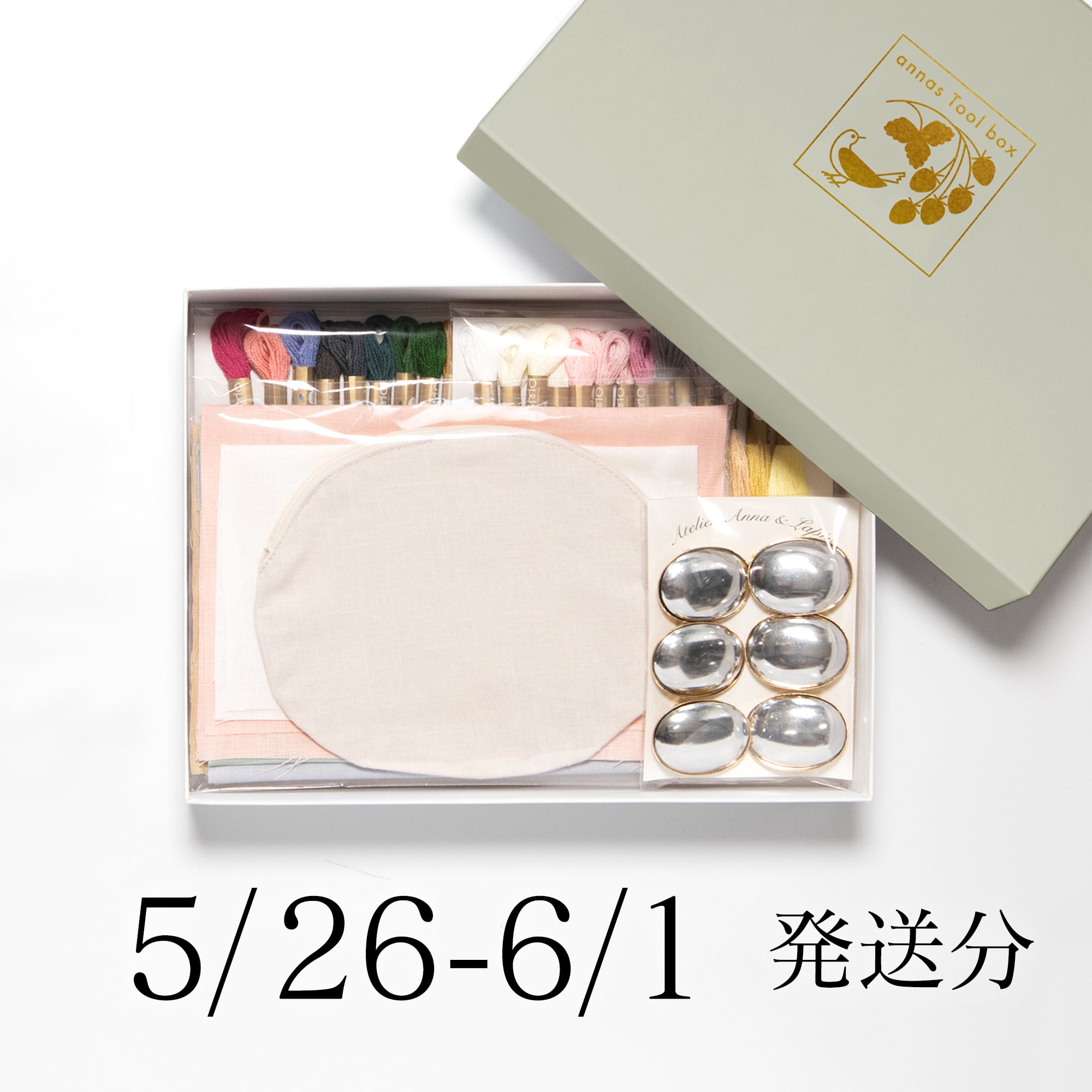 材料はアンナとラパンオリジナルの箔押しボックスに入っています。