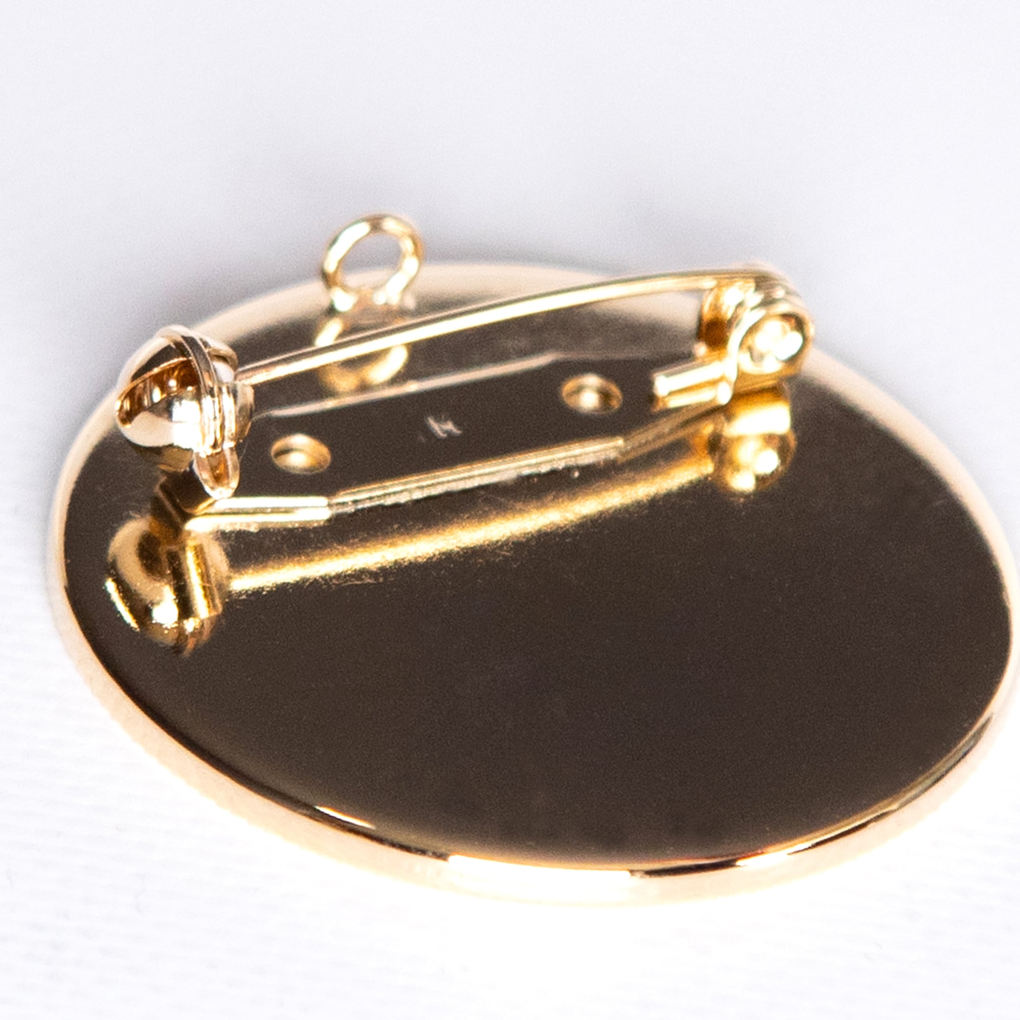 アルミ版1枚(直径34mm)、金属のブローチ台1個(直径36mm、裏面に回転ピン付き)